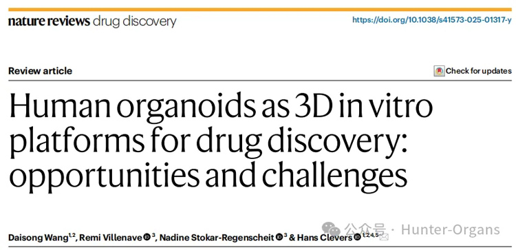 Wang D, Clevers H. Human organoids as 3D in vitro platforms for drug discovery: opportunities and challenges. Nat Rev Drug Discov. 2025 Nov 12. doi: 10.1038/s41573-025-01317-y.